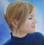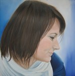 Portretten schilderen van mensen vind ik elke keer spannend. Gezichten van de zijkant schilderen spreken mij het meeste aan. De persoon op het doek is in zijn eigen wereld. Je ziet niet waar hij/zij naar kijkt en wat voor blik er in zijn/haar ogen is.